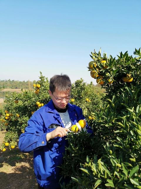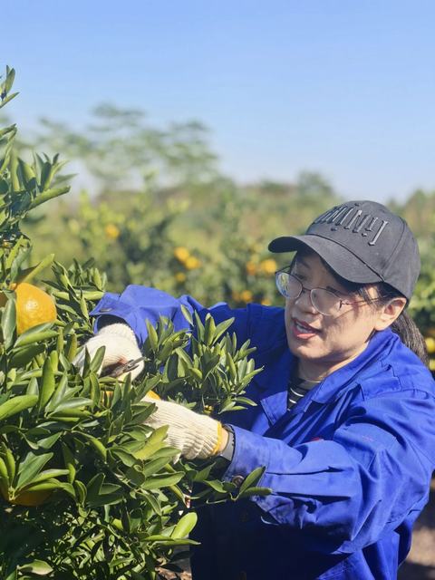 农场山坡上,椪柑林一片连着一片,绿色的叶子与金黄的果实交织成一幅绚烂的画卷,沉甸甸的果实将树枝都压弯了,浓郁的果香飘满果园。“今飞蓝”映衬在果树中,有的蹲下身,采摘低处挂满的果实,指尖拂过果皮,感触果实细密的纹路与阳光留下的温度。有的踮起脚尖,小心翼翼捏住果柄,用剪刀贴着枝条轻轻一剪,“咚”的一声,饱满的椪柑稳稳落进塑料桶里。在劳作中感悟的奋斗精神,在协作中沉淀的凝聚力,悄悄融入每个人心中。